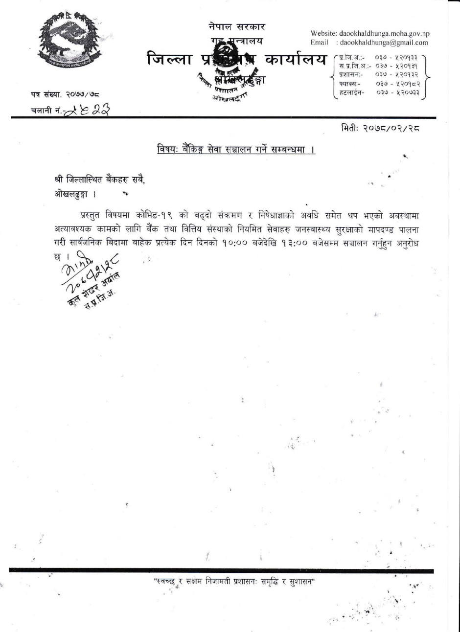 © सर्वाधिकार सुरक्षित जिल्ला प्रशासन कार्यालय, ओखलढुंगा