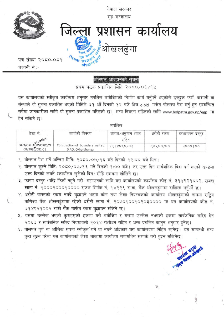 © सर्वाधिकार सुरक्षित जिल्ला प्रशासन कार्यालय, ओखलढुंगा .