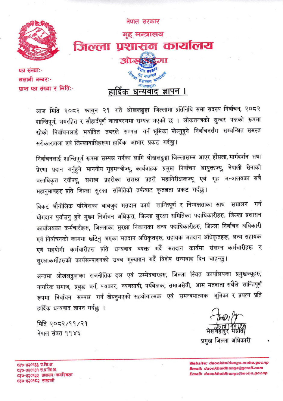 © सर्वाधिकार सुरक्षित जिल्ला प्रशासन कार्यालय, ओखलढुंगा