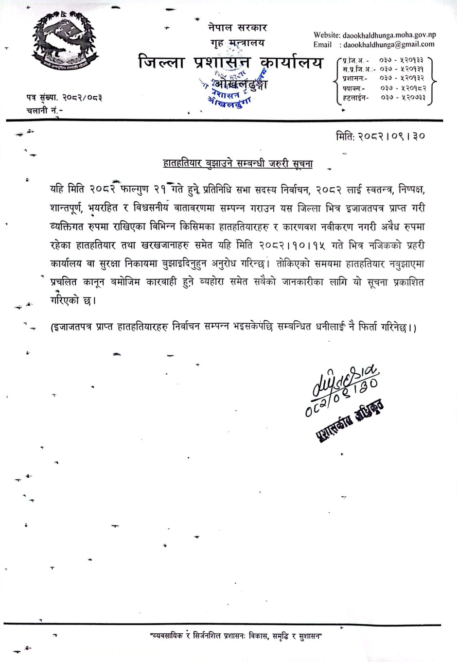 हातहतियार बुझाउने सम्बन्धी जरुरी सूचना ।