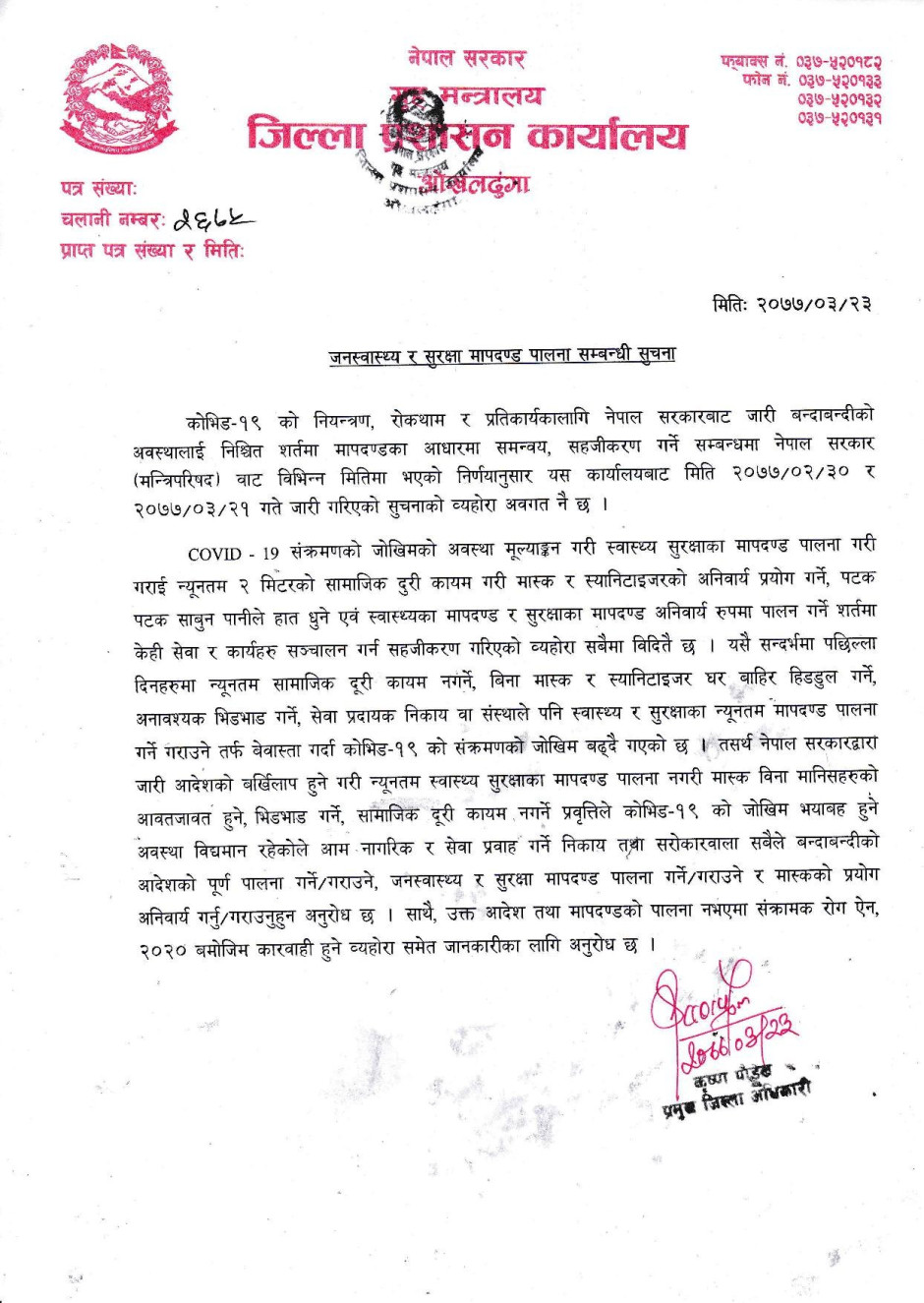 जनस्वास्थ्य र सुरक्षा मापदण्ड पालना सम्बन्धी सुचना ।