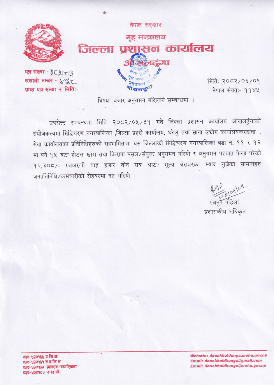 मिति २०८२-०५-३१ गते बजार अनुगमन गरिएको सम्बन्धमा ।