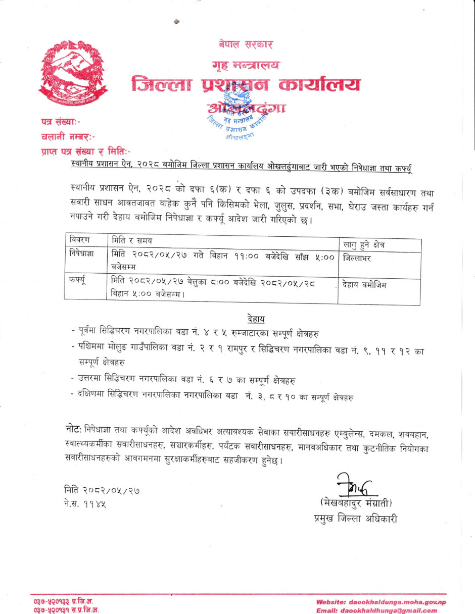 © सर्वाधिकार सुरक्षित जिल्ला प्रशासन कार्यालय, ओखलढुंगा .