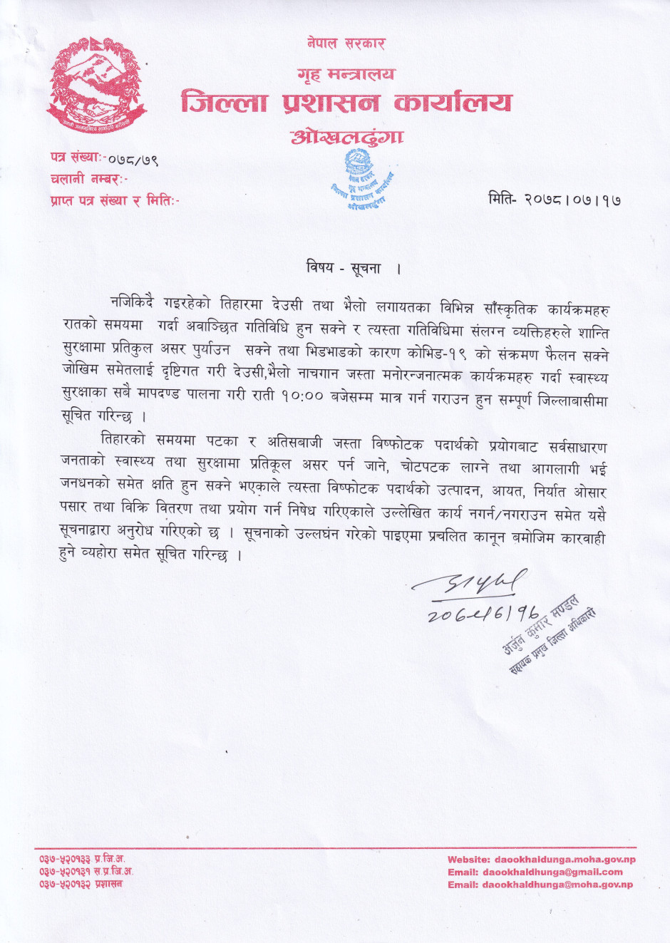 © सर्वाधिकार सुरक्षित जिल्ला प्रशासन कार्यालय, ओखलढुंगा