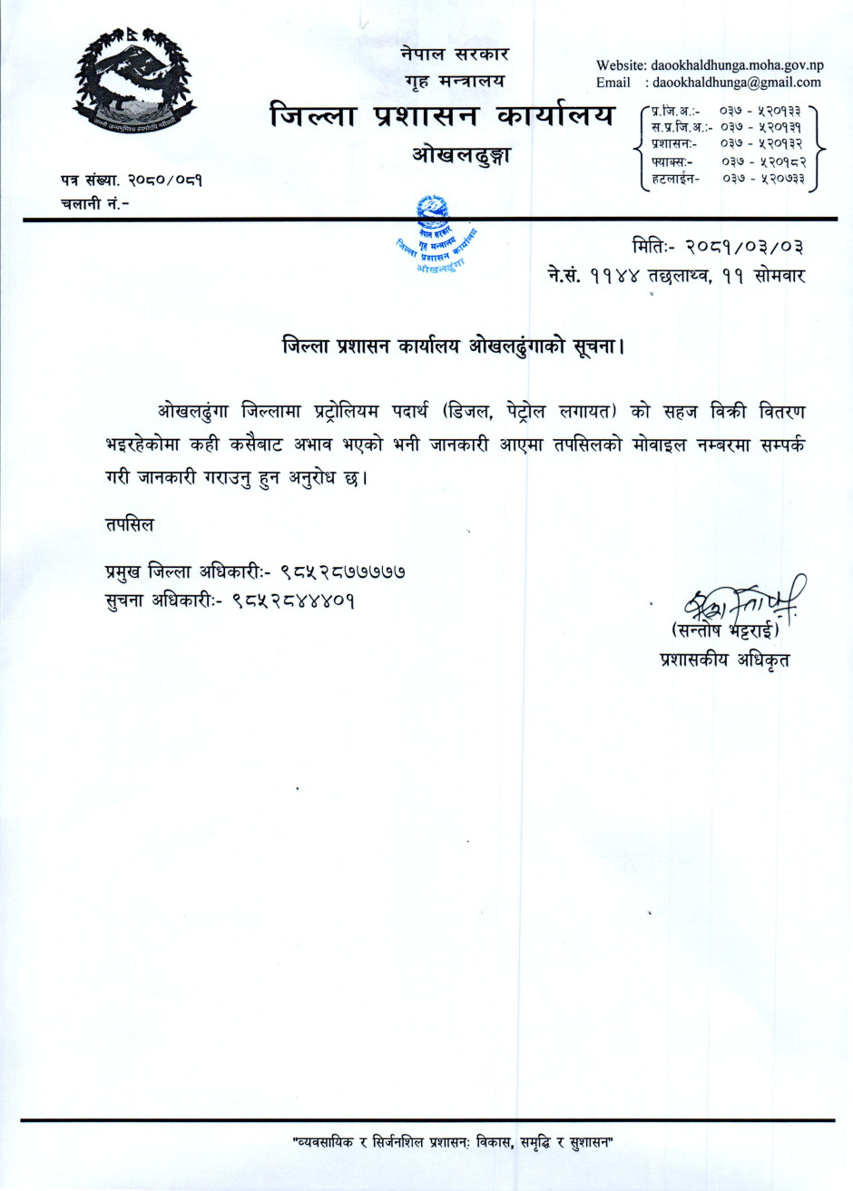 © सर्वाधिकार सुरक्षित जिल्ला प्रशासन कार्यालय, ओखलढुंगा