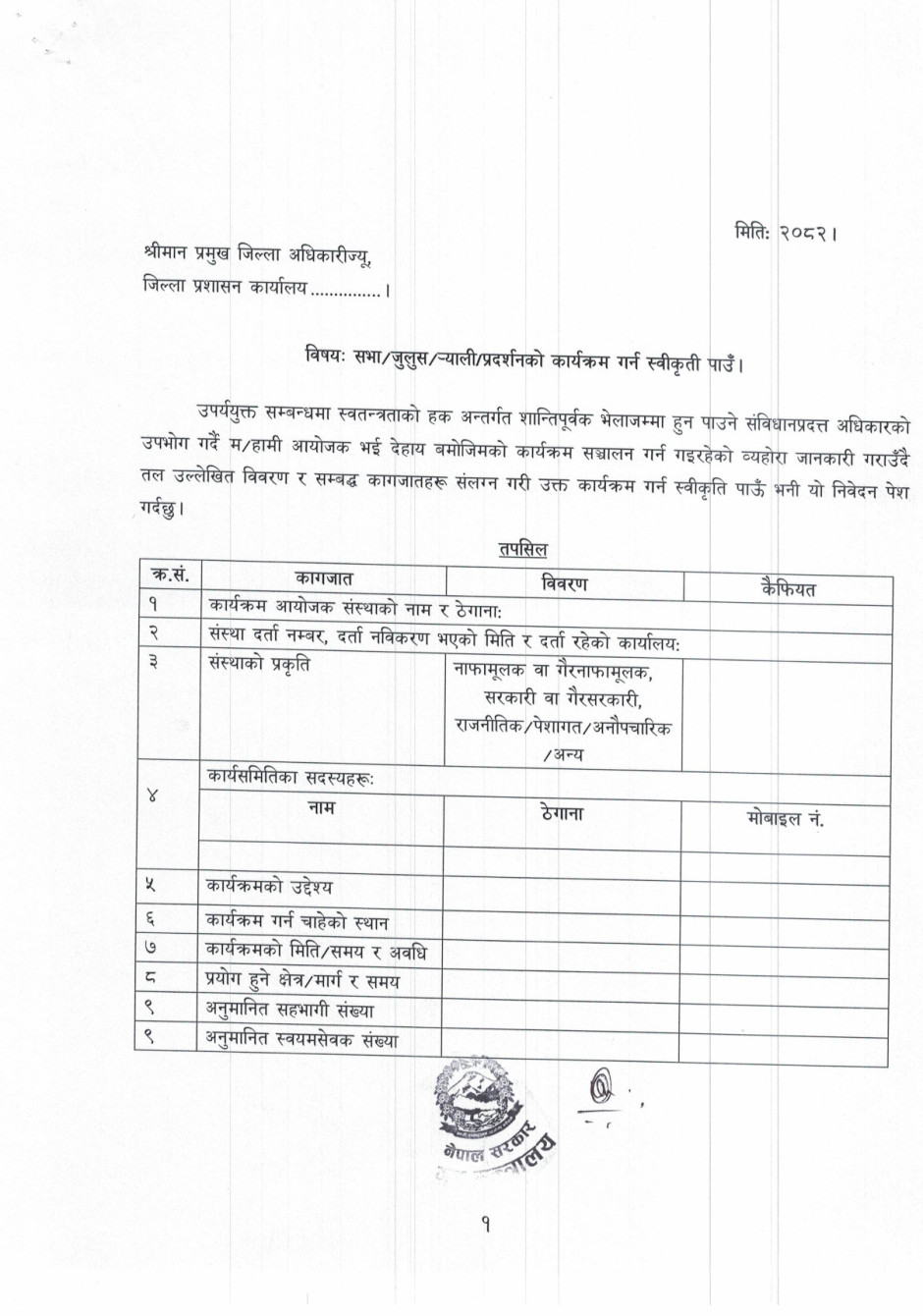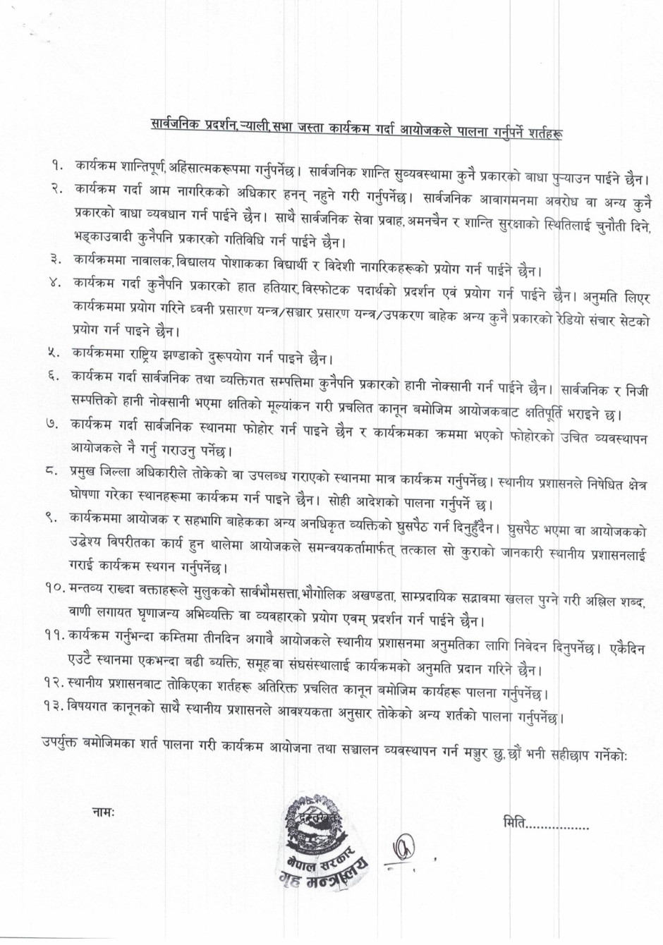 सार्वजनिक प्रदर्शन, र्याली, सभा जस्ता कार्यक्रम गर्दा अनुमति लिने सम्बन्धी जरुरी सूचना ।