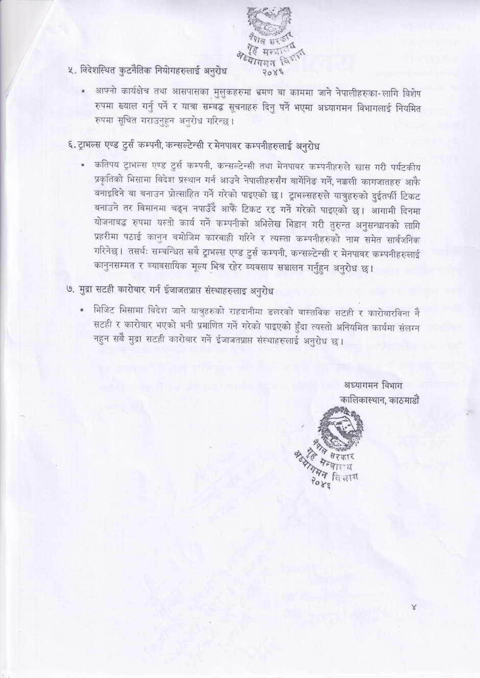 सुरक्षित, मर्यादित र व्यवस्थित वैदेशिक यात्रा सम्बन्धी सूचना !