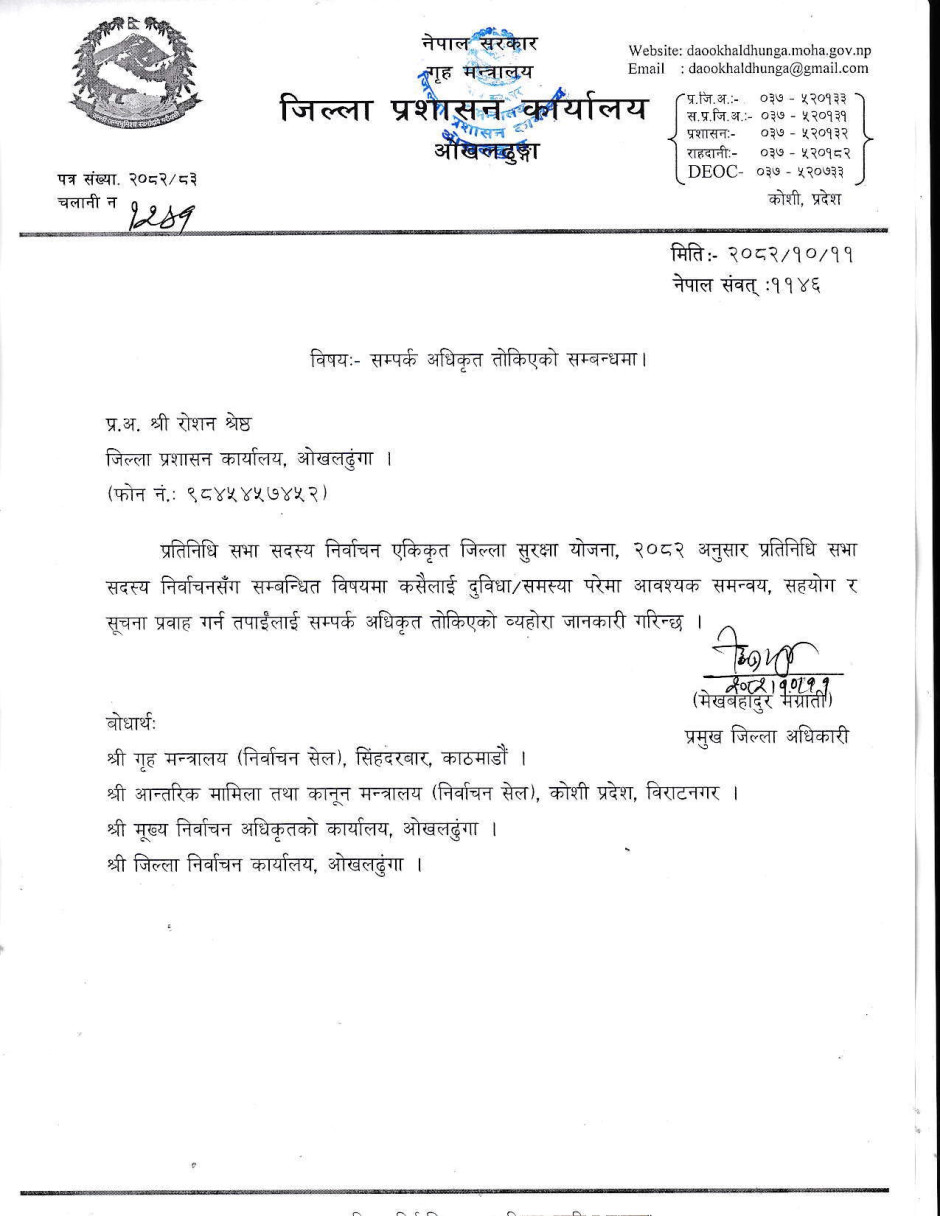 सम्पर्क अधिकृत तोकिएको सम्बन्धमा