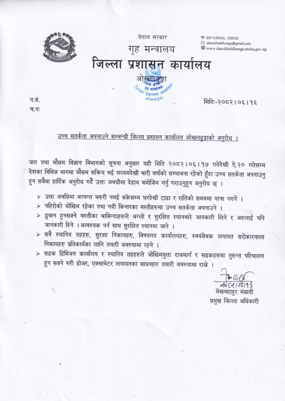 © सर्वाधिकार सुरक्षित जिल्ला प्रशासन कार्यालय, ओखलढुंगा