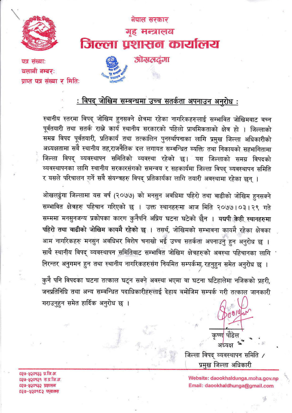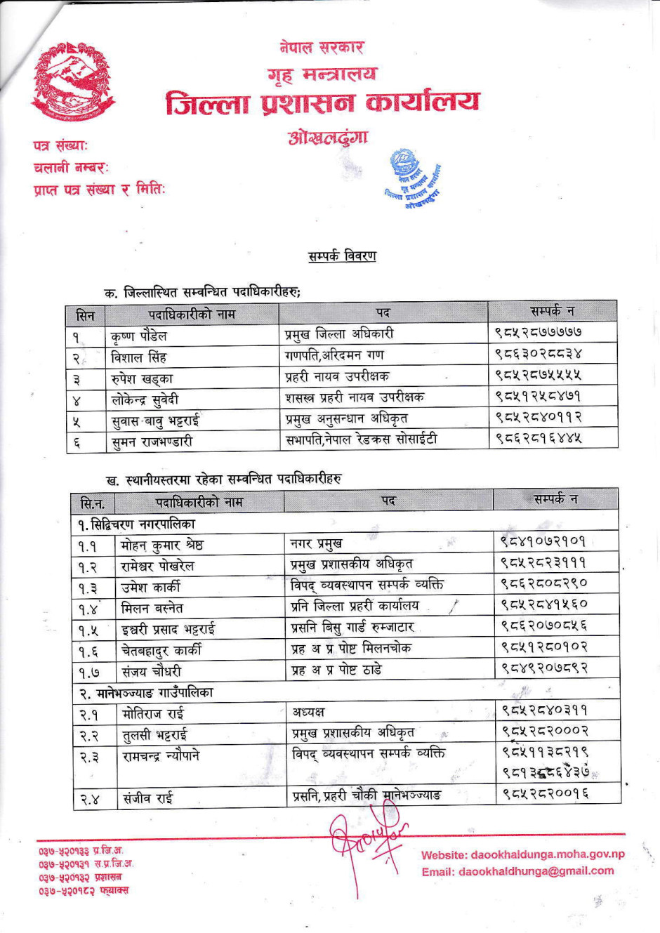 © सर्वाधिकार सुरक्षित जिल्ला प्रशासन कार्यालय, ओखलढुंगा .